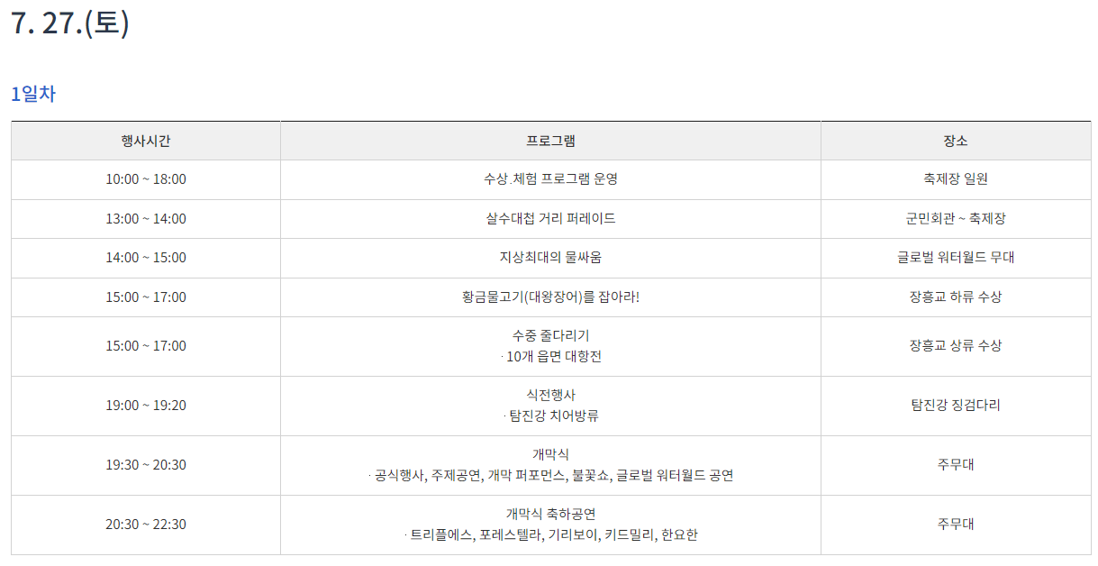 - 주관 : 장흥 물축제 추진위원회