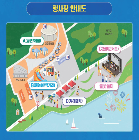 내용 : 물 미끄럼틀, 버블머신 등 다양한 물놀이 프로그램, 여름철 인기 있는 음식/음료로 구성된 푸드트럭