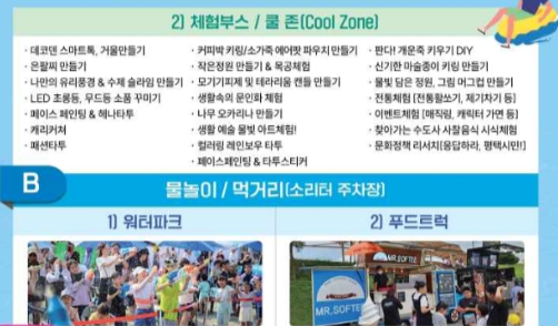 내용 : 물 미끄럼틀, 버블머신 등 다양한 물놀이 프로그램, 여름철 인기 있는 음식/음료로 구성된 푸드트럭
