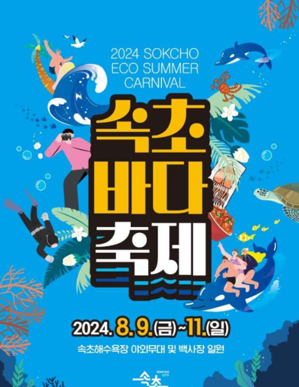속초해수욕장 일원에서 열리는 속초바다축제는 8월 9일부터 3일간 진행됩니다. 다양한 체험프로그램과 레크레이션, 공연등의 볼거리가 가득합니다.
