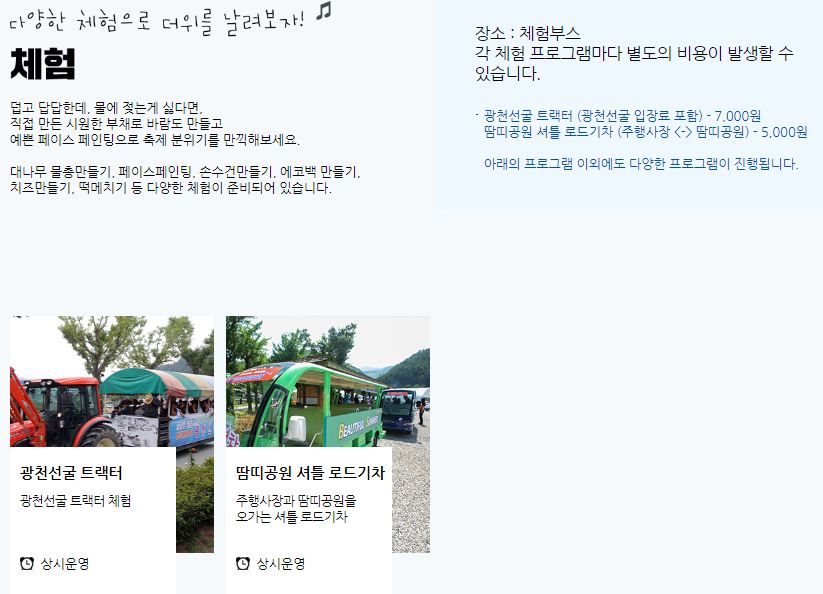 이곳은 캠핑장도 함께있으니 캠핑과 축제를 함께 즐기시기 원하시는 분들이라면 꼭 방문해보시기 바랍니다.