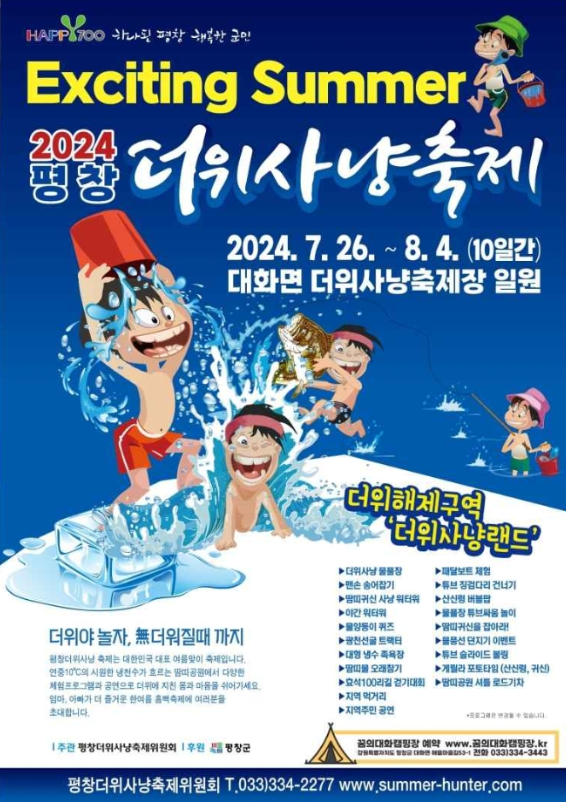 2024년 7월 26일부터 진행되는 평창더위사냥축제는 총 10일간 진행되는 여름축제입니다.