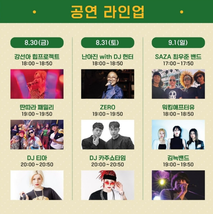 - 8월 30일(금) : 강선아 힙프로젝트, 딴따라 패밀리, DJ티아