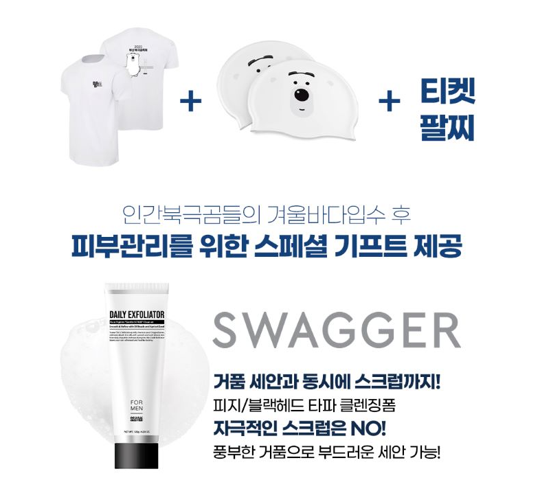 참가비는 30,000원이며 참가비 결제시에 북극곰 티셔츠와 수모, 스웨거 폼클렌징, 북극곰 키링을 사은품으로 받으실 수 있습니다.