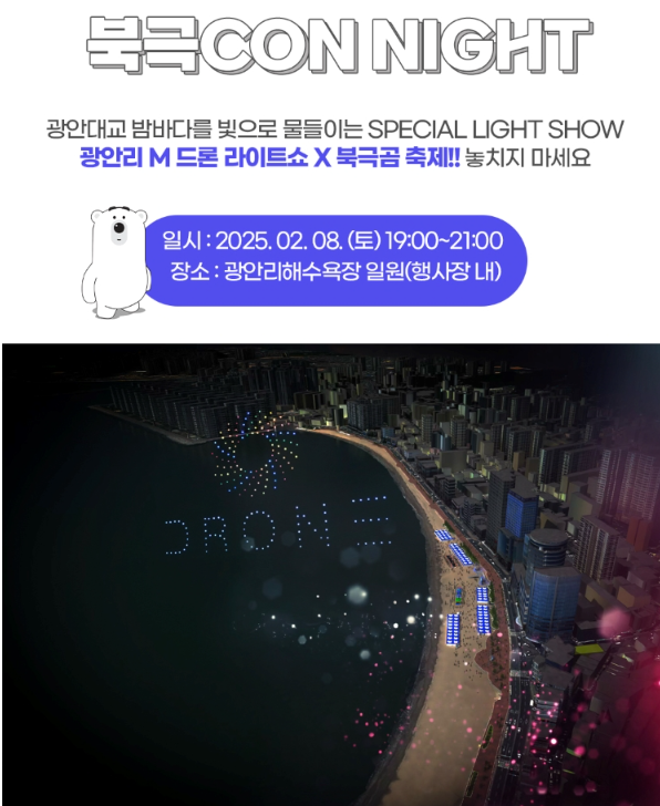 부산 북극곰축제는 광안리 해수욕장에서 2월 7일부터 9일까지 3일간 진행이 됩니다.