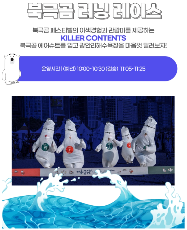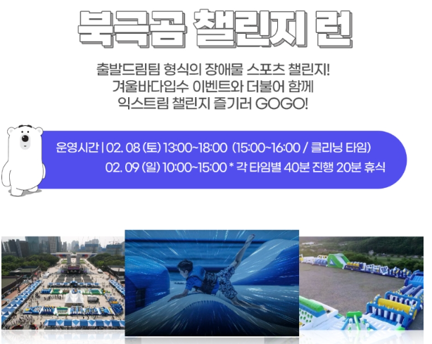 부대 프로그램으로는 북극곰 챌린지 런, 북극곰 러닝 레이스, 북극 CON NIGHT가 준비되어 있습니다.