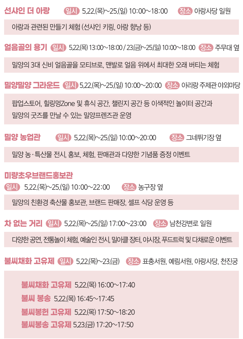 - 행사 주최 : 경상남도, 밀양시, 재단법인 밀양문화관광재단