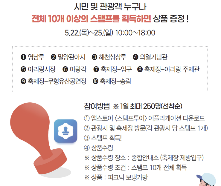 이번 밀양아리랑대축제에서는 스탬프투어가 가능합니다.