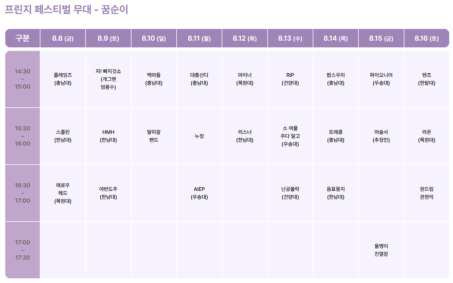 대전 0시 축제 프로그램 일정표