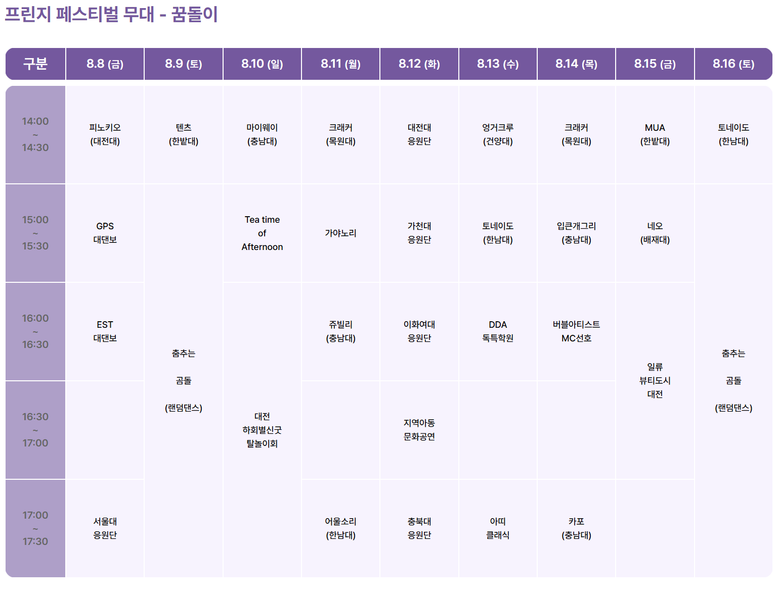 • 축제기간 : 2025년 8월 8일(금) ~ 8월 16일(토) 9일간