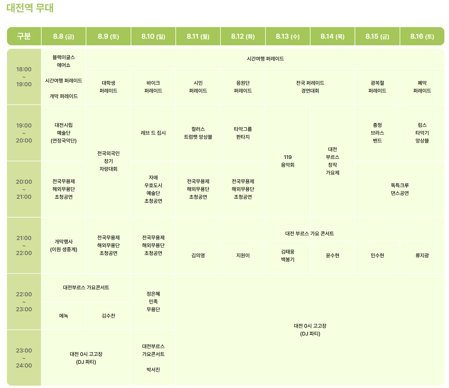 대전 0시축제 프로그램