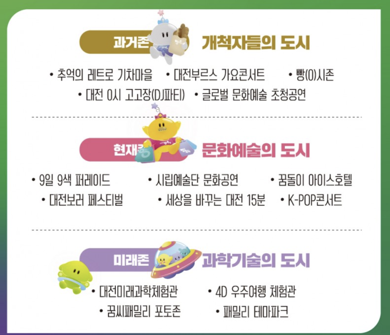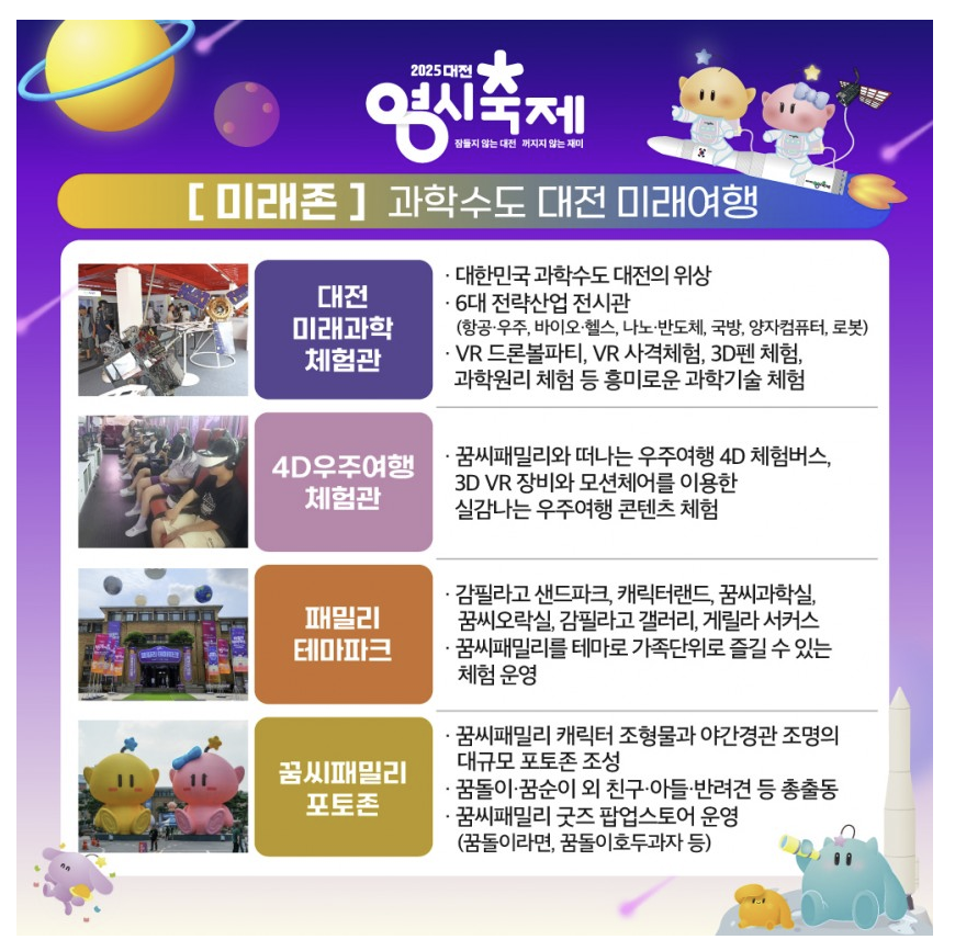 2025년 대전0시 축제는 과거존, 현재존, 미래존으로 테마를 나눠서 진행이 됩니다.