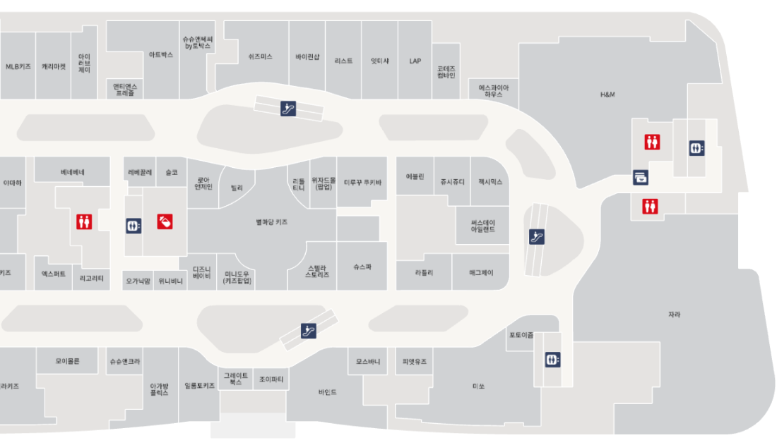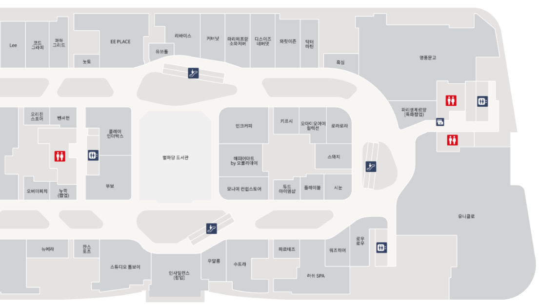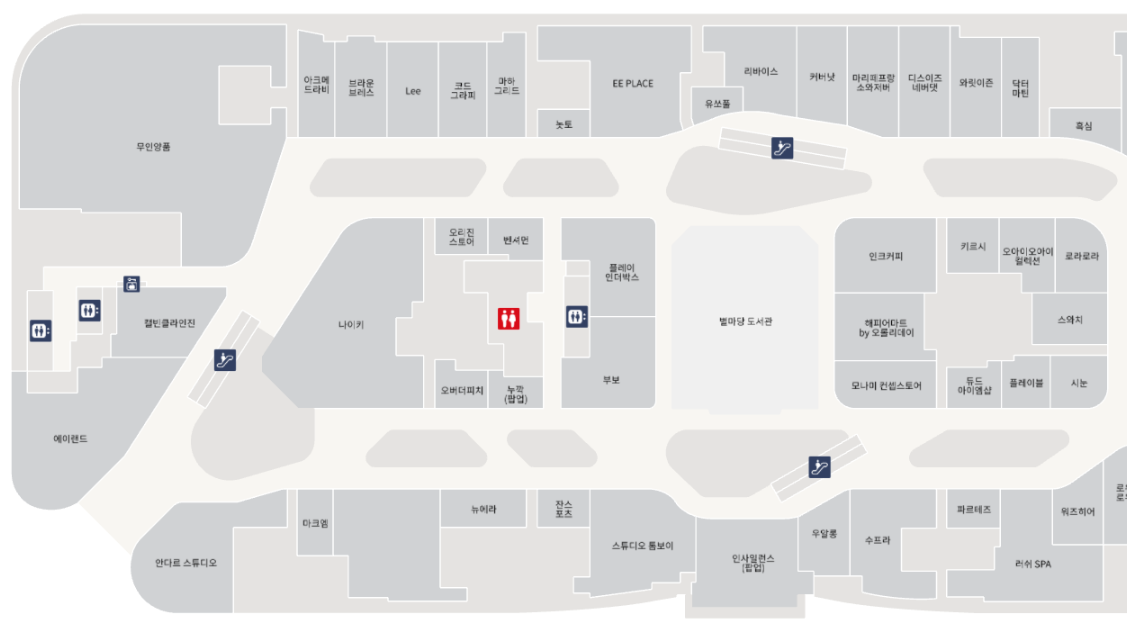 층별로 어떤 편의시설과 매장들이 있는지 아래를 참고하시기 바랍니다.